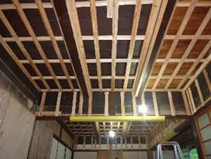 天井は梁を包んで出来るだけ高くしました。